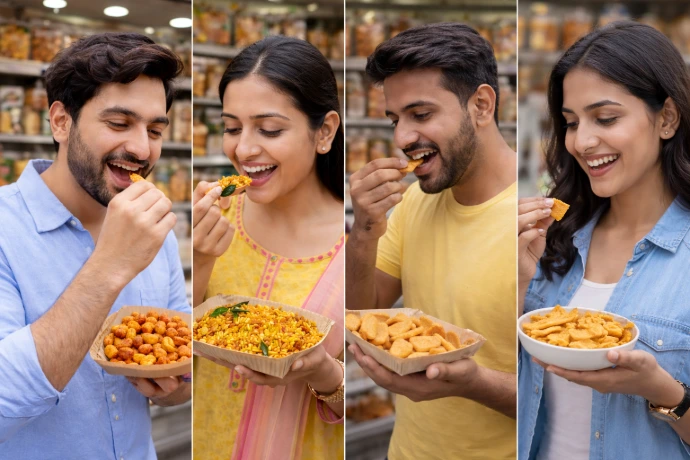 “Taste the real snack happiness with Mathri, Chivda, Masala Kaju and Namak Para – only at Yummy Food.”