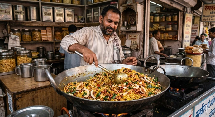 A light, crunchy mix of flattened rice and traditional spices, perfect for everyday snacking.