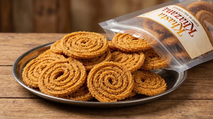 Spiral crispy snack made with traditional spices and deep-fried perfection.